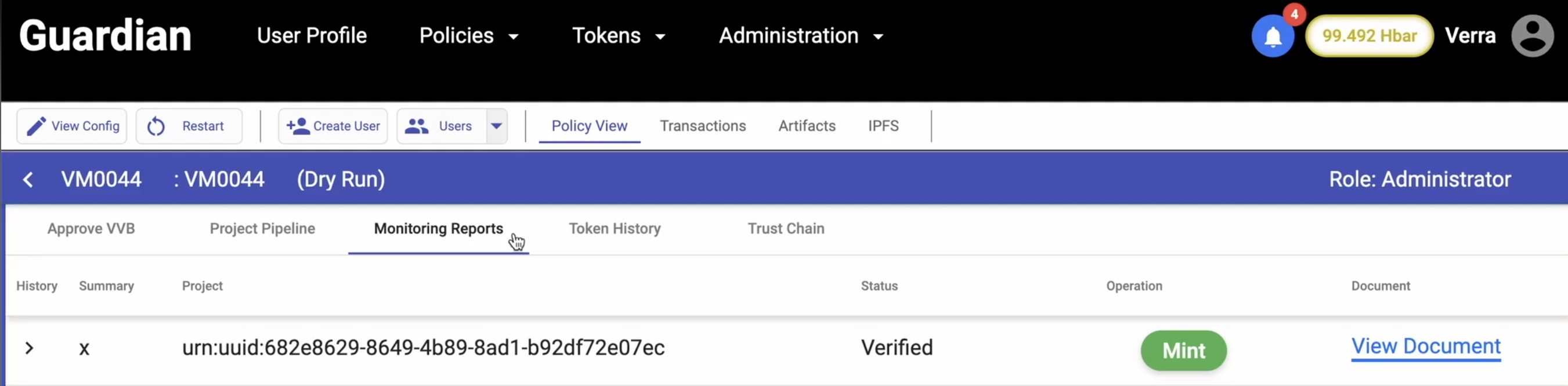 15. Once monitoring report is validated, we login as SR and click on Mint to mint the tokens.
