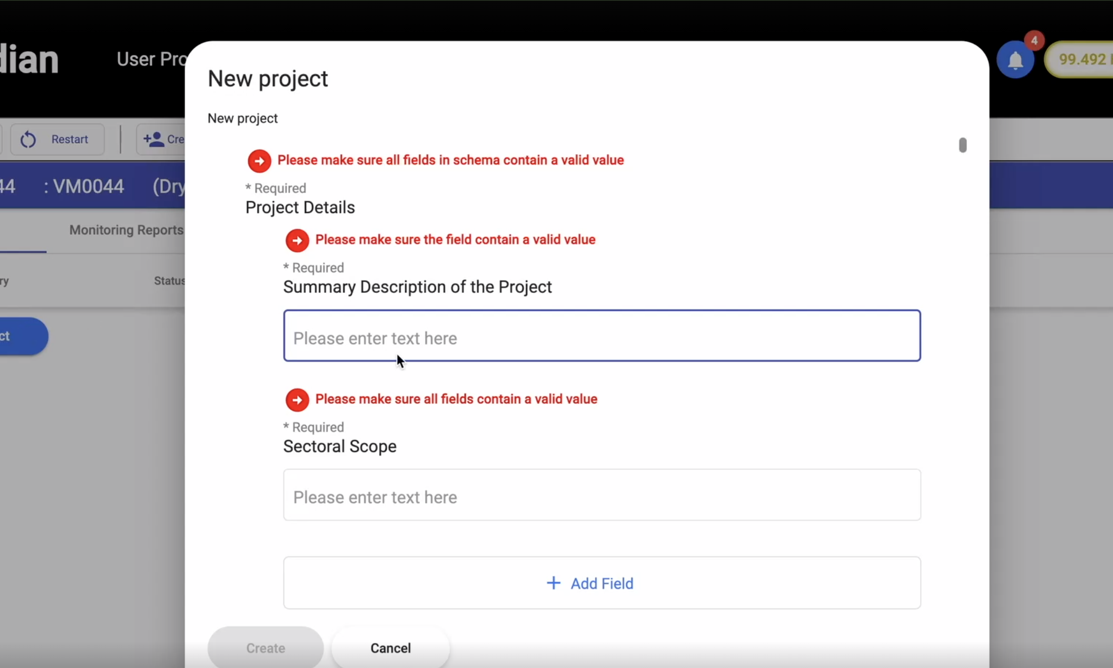 4. Project Description - Project Proponent information, standard project information, methodology information like baseline emissions, project emissions, etc.