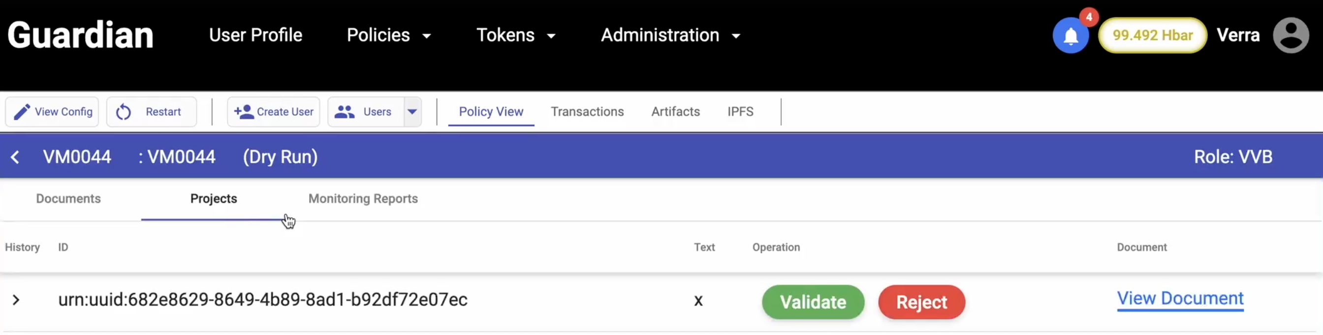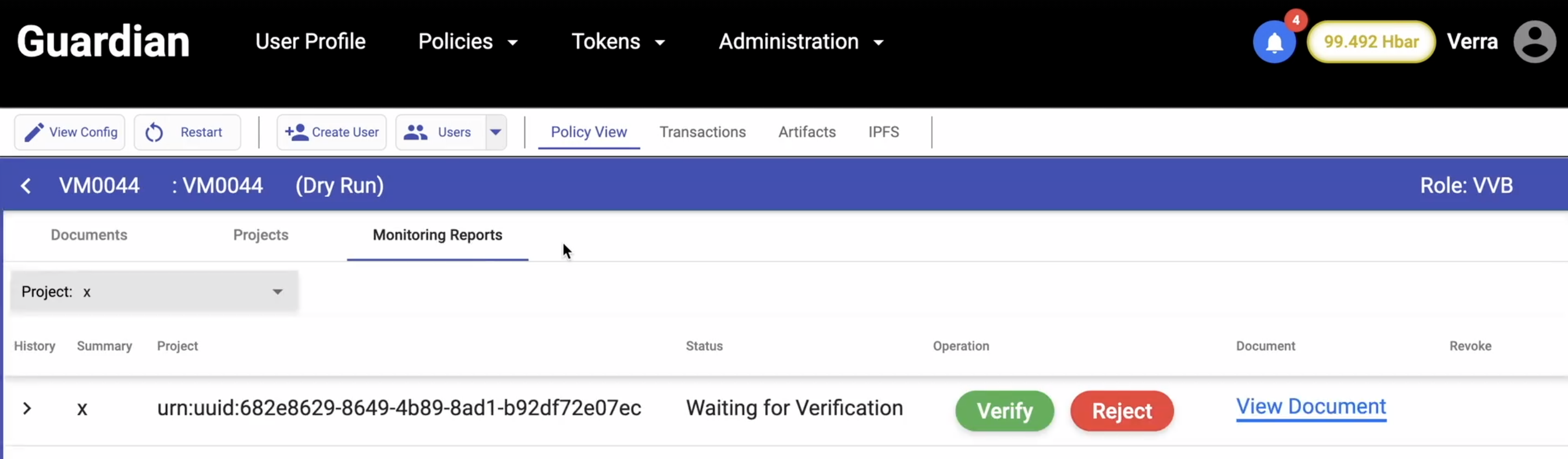 14. Once report is submitted, we now login as VVB and validate the monitoring report by clicking on Verify button.