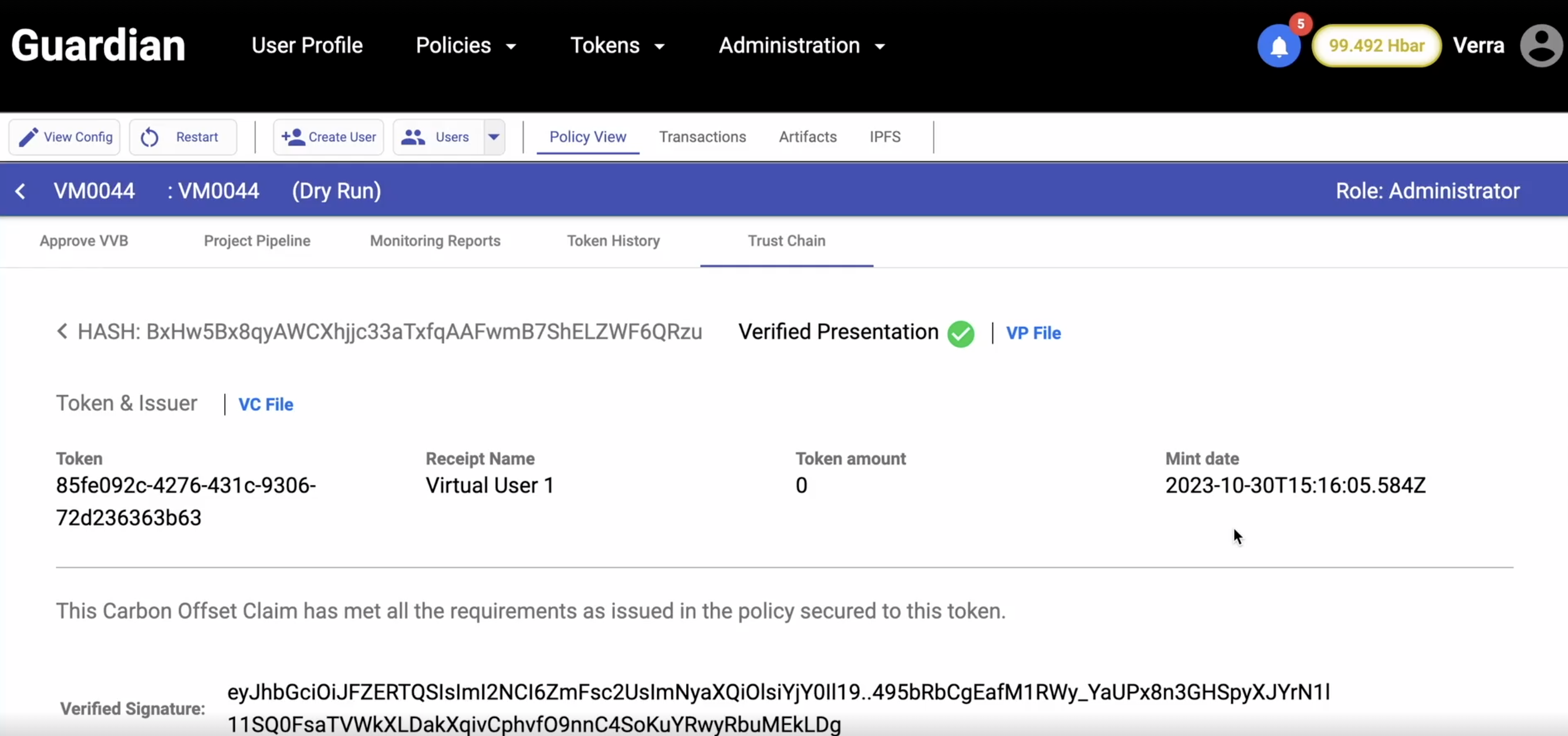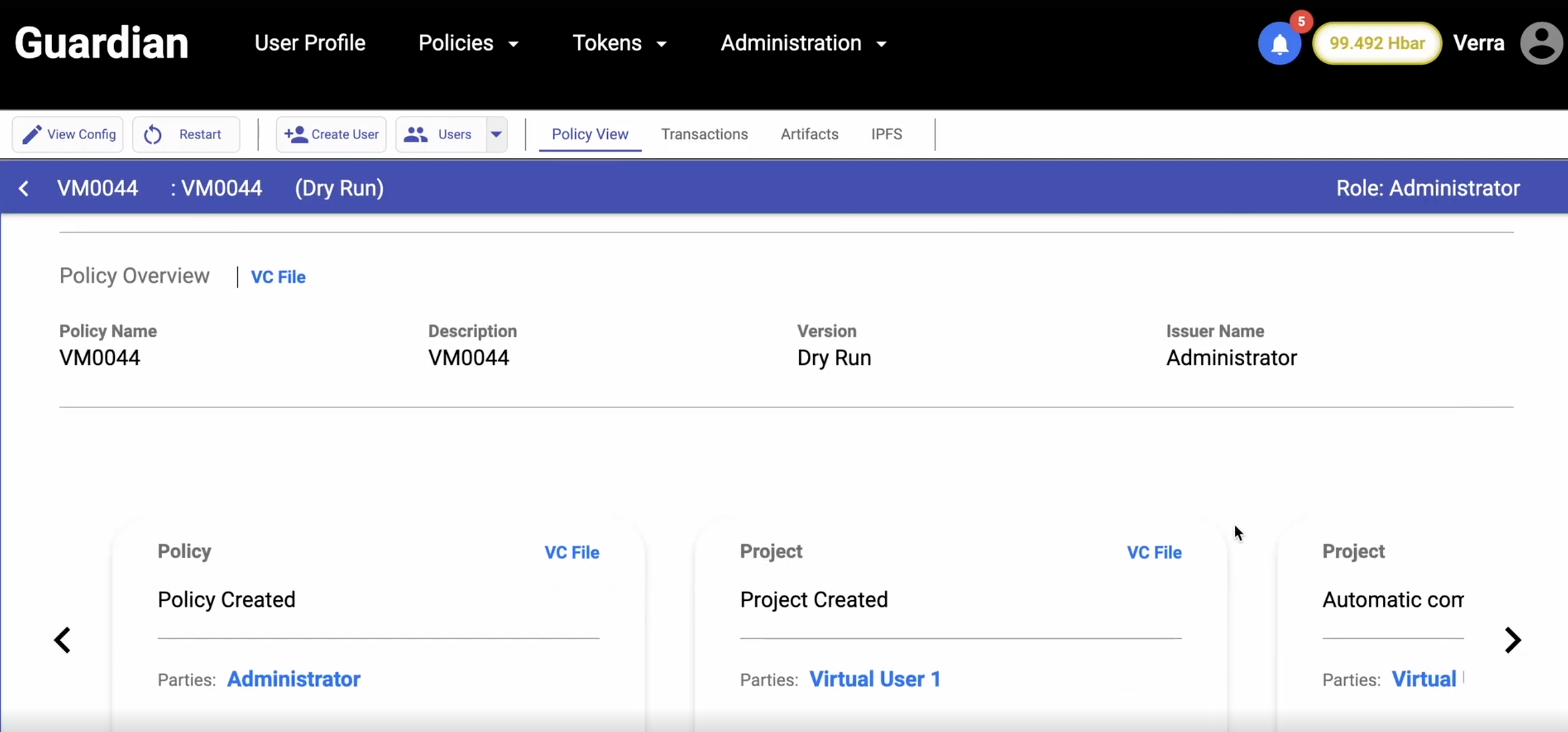 This policy is published to Hedera network and can either be imported via Github (.policy file) or IPFS timestamp.
