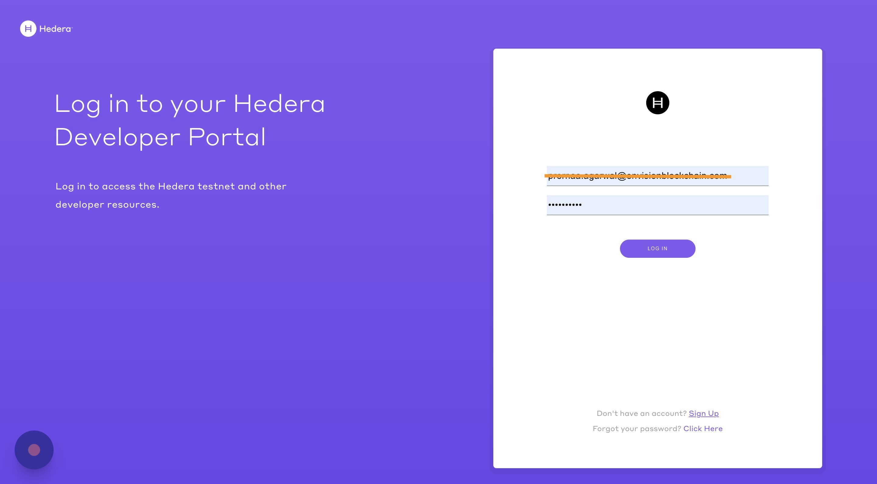 1. We need to create an account in Hedera Testnet Portal : <https://portal.hedera.com/login>