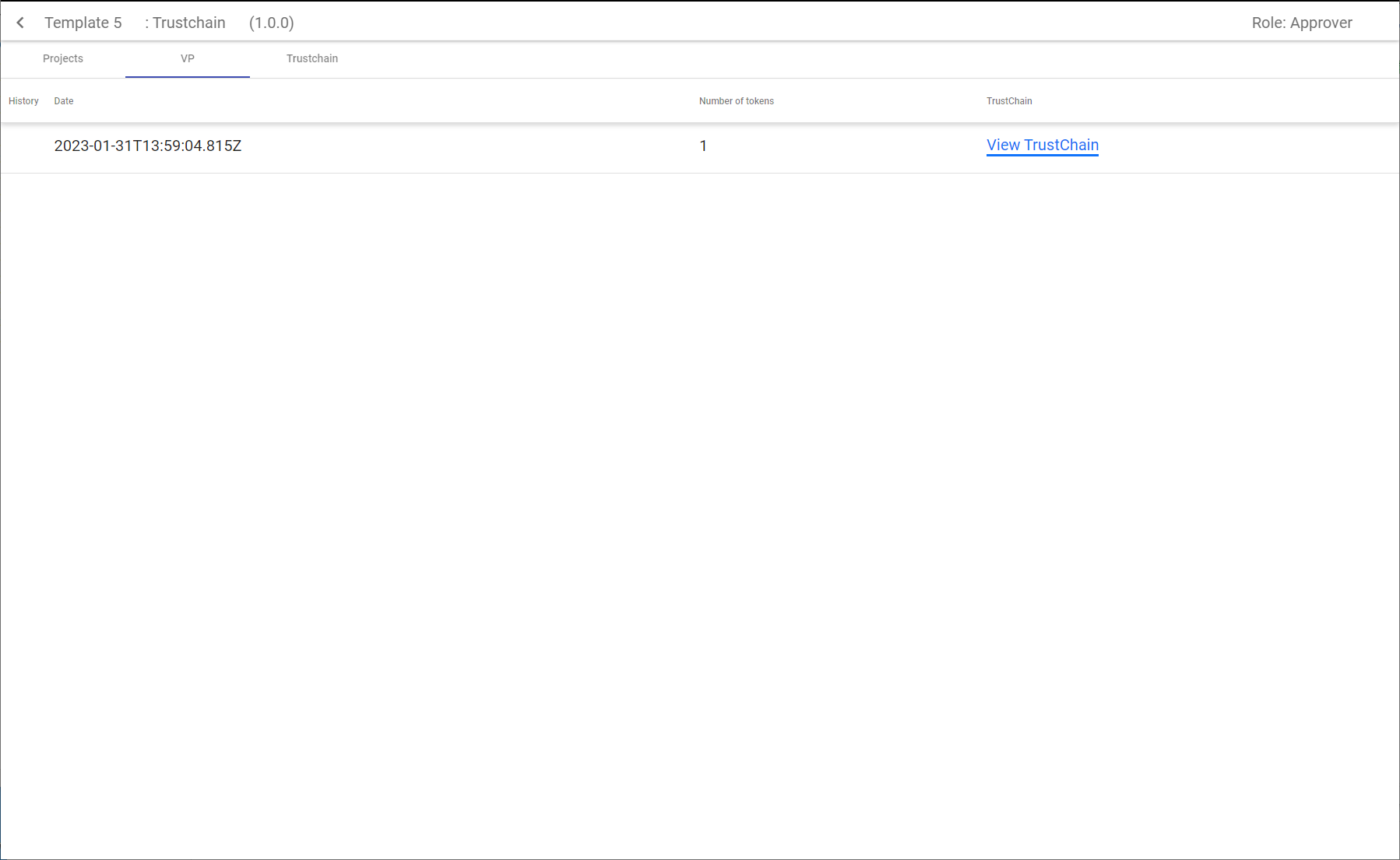 2. To activate the ‘**reportBlock**’ an id or a hash of the VP document is needed, we will add the grid containing the list of the VP documents and links to the trustchain.