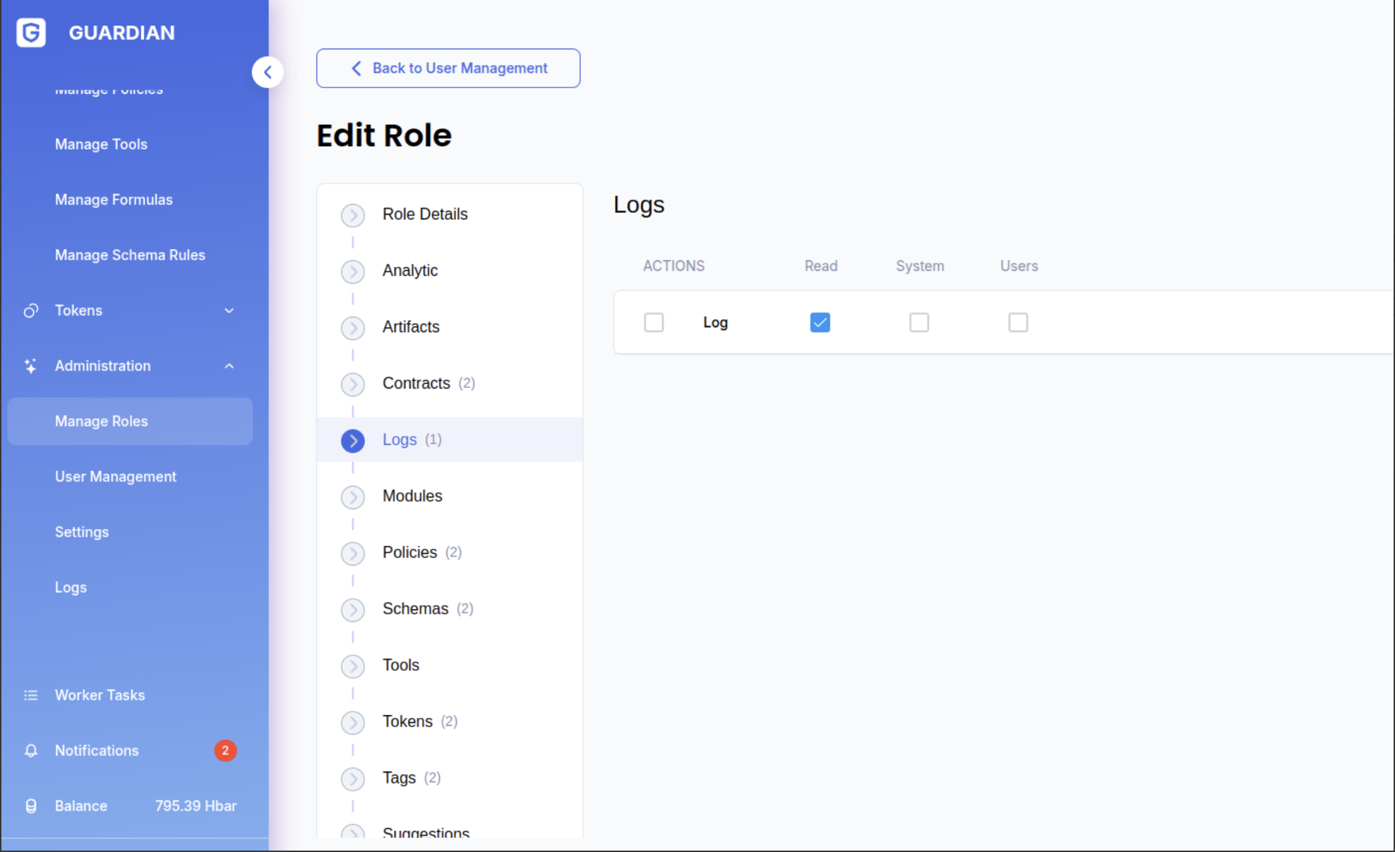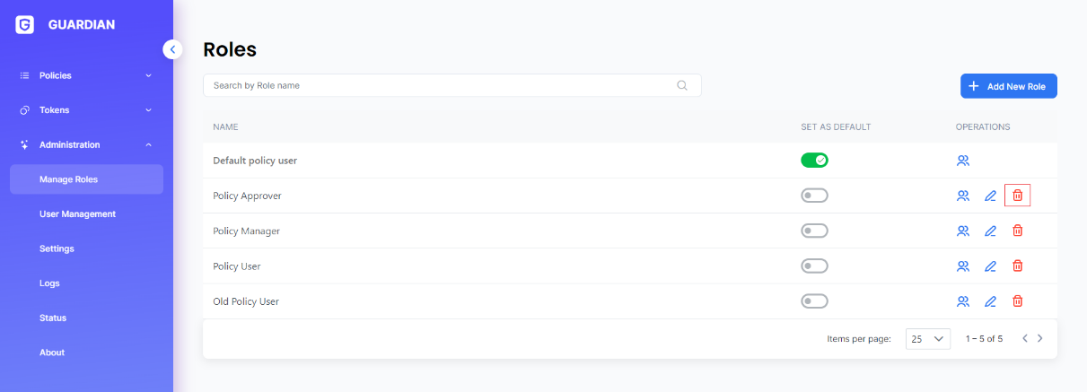 Roles and permissions allow for precise configuration of user access rights to Guardian functionality.